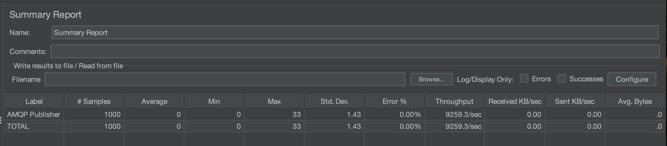 jmeter를 이용해서 개발기에서 API가 큐에 메시지를 넣는 처리량(RPS)을 측정해보았습니다. 이 측정은 큐에 넣는 처리량만을 비교한 것이며, 실제 운영 환경에서는 큐에 들어간 메시지를 소비하여 실제 발송까지 완료하는 데는 추가 시간이 소요됩니다. 1000건에 대한 RPS