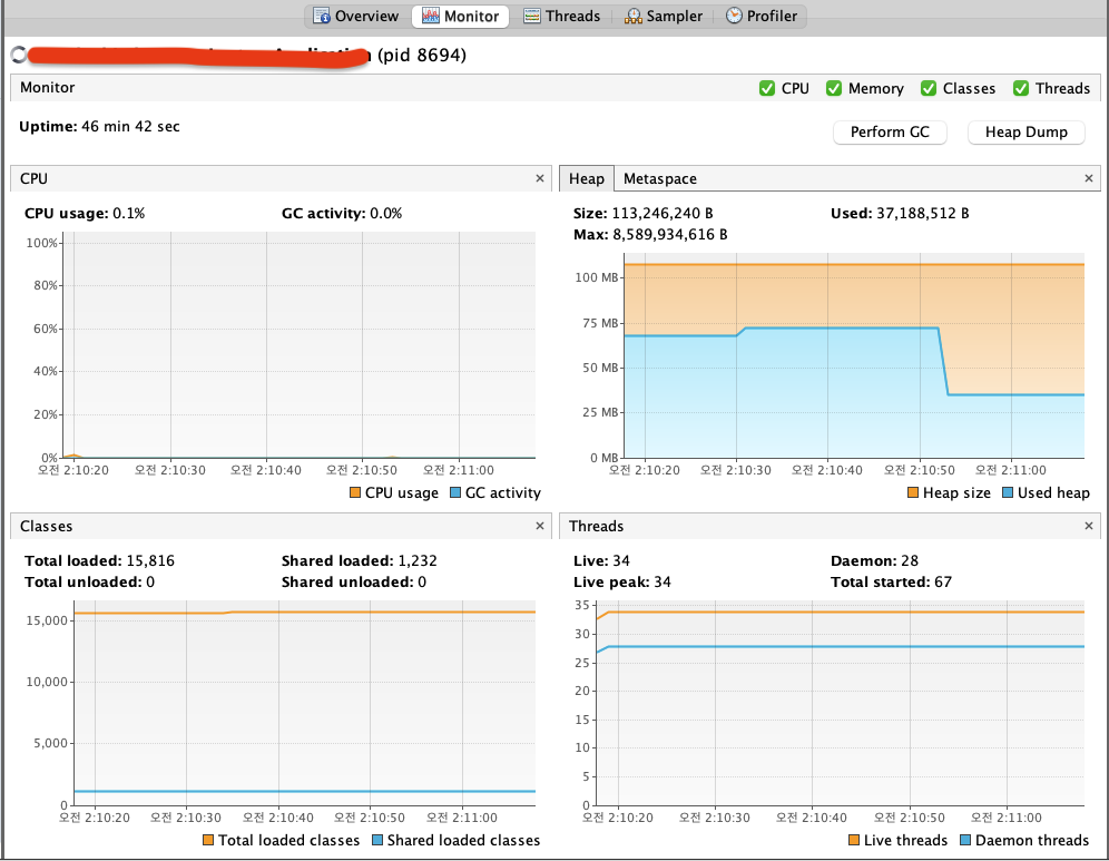 스프링 어플리케이션 서버 구동 시 메모리들은 어떻게 사용하고 있을까요?