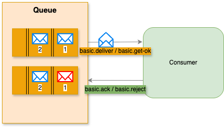 컨슈머가 메시지를 처리를 못하거나 서버 연결이 끊겼을거나 여러 가지 이유로 실패할 수 있습니다. 이러한 이유로 큐에서 메시지를 제거해야할 시점을 컨슈머가 제어할 수 있도록 권한을 부여합니다.