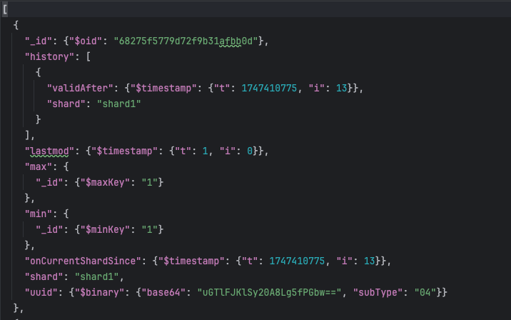 샤딩키 hotspot방지를 위해 Range 기반 샤딩이 아닌 Hashed 기반 샤딩으로 결정하여 진행하였습니다.
