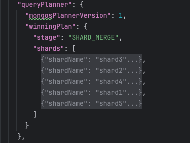 샤딩키가 ObjectId로 되어 있기 때문에 사용자 기준 수정이나 조회시 모든 샤드를 접근하여 Shard Merge가 발생합니다. Shard Merge는 MongoDB에서 고비용 작업이기 때문에 성능에 영향을 미칩니다.