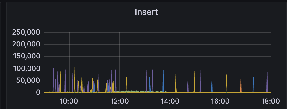 hotspot 문제로 인하여 샤드에 평균 10만건이 insert 되고 있었습니다.