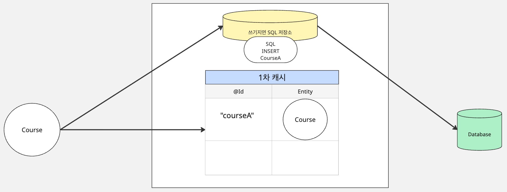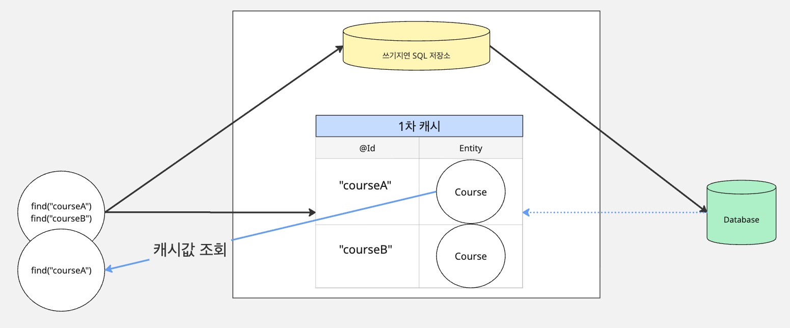 - 만약 courseA처럼 1차 캐시에 원하는 데이터가 있으면 객체 반환